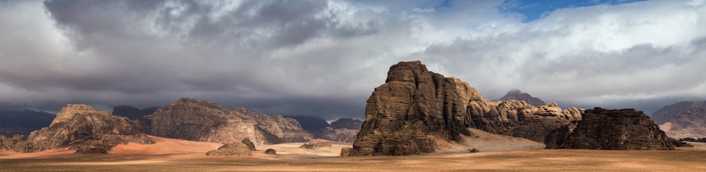 Ahlan Wa Sahlan! (Willkommen) Dies ist wahrscheinlich das erste, was die Einheimischen zu Ihnen sagen werden, wenn Sie im legendären Wadi Rum ankommen. Dieses Tal im Süden Jordaniens, das auch als Tal des Mondes bekannt ist, soll schon seit prähistorischen Zeiten bewohnt gewesen sein, also bereits vor 12.000 Jahren. Das Gebiet wurde 1997 zum offiziellen Schutzgebiet, dem Wadi Rum-Schutzgebiet, erklärt und umfasst heute über 183.350 Hektar.