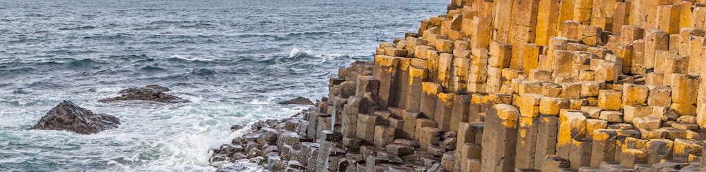 Mit den krachenden Wellen des rauen Nordatlantiks und der markanten felsigen, klippengesäumten Küste ist der Giant's Causeway ein einzigartiger und faszinierender Ort. Das Gebiet besteht aus etwa 40.000 Basaltsäulen, die als Folge eines Vulkanausbruchs vor über 60 Millionen Jahren entstanden sind. Die Spitzen der Säulen haben meist eine sechseckige Form und bilden Trittsteine, die von der Kliffkante hinunter zum Meer führen, wo sie unter der Wasseroberfläche verschwinden. Die höchsten Säulen sind etwa 12 Meter hoch, und die erstarrte Lava ist an bestimmten Stellen etwa 30 Meter dick.