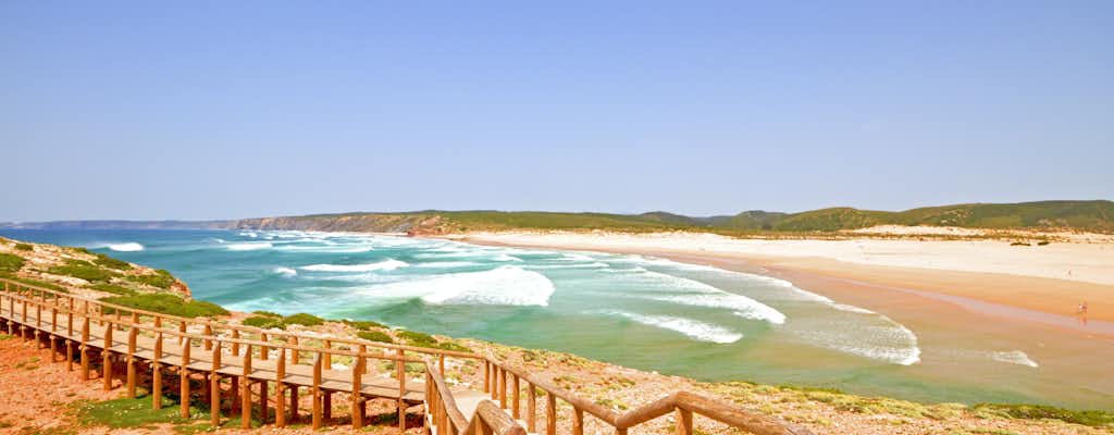 Buchen Sie Ihre Discover Carrapateira Reittour, um sich mit dem cremeweißen Sand und den Dünen zu verbinden und den singenden Vögeln und den Fußabdrücken des Pferdes zu lauschen. Überqueren Sie dann die Dünen und spüren Sie die Kraft des Pferdes, während Sie am Strand entlang reiten, während Sie die atemberaubende Aussicht entlang der Küste bewundern.
