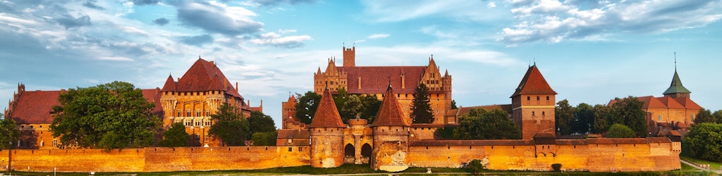 Die Burg des Deutschen Ordens in Malbork ist ein befestigtes Kloster aus dem 13. Jahrhundert, das massiv erweitert und verschönert wurde, nachdem der Großmeister 1039 aus Venedig hierher gezogen war. Die mittelalterliche Backsteinburg wurde im 19. und 20. Jahrhundert und nach dem Zweiten Weltkrieg wieder aufgebaut und erlitt dabei große Schäden. Die riesige Burganlage ist die größte der Welt, gemessen an der Landfläche und steht auf der Liste des UNESCO-Weltkulturerbes.