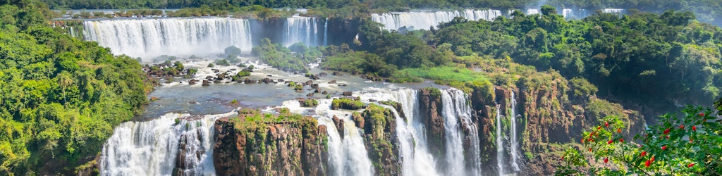 Disfrute de una vista inolvidable de las Cataratas del Iguazú desde el lado brasileño. Explore el Parque Nacional del Iguazú y admire un impresionante espectáculo natural.