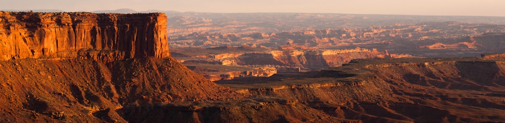 El parque nacional Tierra de Cañones, situado en el corazón del desierto alto del sureste de Utah, ofrece un paisaje lleno de colores con cañones, mesas, buttes y arcos formados por la erosión de los ríos Colorado y Green.