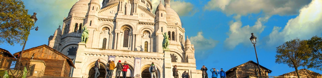 El barrio de Montmartre se sitúa en una colina con el mismo nombre, a 130 metros por encima de París. Montmartre solía ser un pueblo separado que estaba al norte de París antes de unirse a la ciudad en 1860 para convertirse en uno de los distritos más famosos de la capital. Su monumento más importante es la Basílica del Sagrado Corazón, construida en 1873 y famosa por su estilo arquitectónico Romano-Bizantino. Desde el interior, la Basílica ofrece una vista espectacular de la mayor campana de Francia, la "Savoyarde". Además, también posee, entre otras muchas obras de arte, el mosaico más grande del mundo.