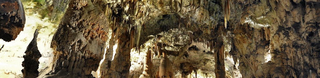 Przeglądaj 5 km jaskini podczas półtoragodzinnej wycieczki do jaskini, jadąc metrem i spacerując ścieżką. Ciesz się podziemną scenerią, zaczynając od pokrytej stalaktytami jaskini Great Mountain. Kontynuuj pieszo do jaskini Velika Gora, przez most rosyjski do 5-metrowego białego stalagmitu zwanego „Brilliant”. Z powrotem wsiądź do pociągu przy sali koncertowej, skąd wrócisz do wejścia.