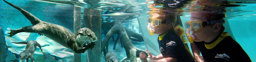 Idealne miejsce na rodzinną zabawę, Discovery Cove w Orlando oferuje wypoczynek rodem z kurortu z ekscytującymi spotkaniami ze zwierzętami w oszałamiającej tropikalnej atmosferze. Ten interaktywny park ukazujący życie morskie jest inny niż wszystkie i zapewnia swoim gościom kompleksowe usługi i udogodnienia. Pływaj z delfinami, nurkuj z rurką wśród ryb, nakarm egzotyczne ptaki, zrelaksuj się w dużym basenie w ośrodku i skorzystaj z wielu innych atrakcji.