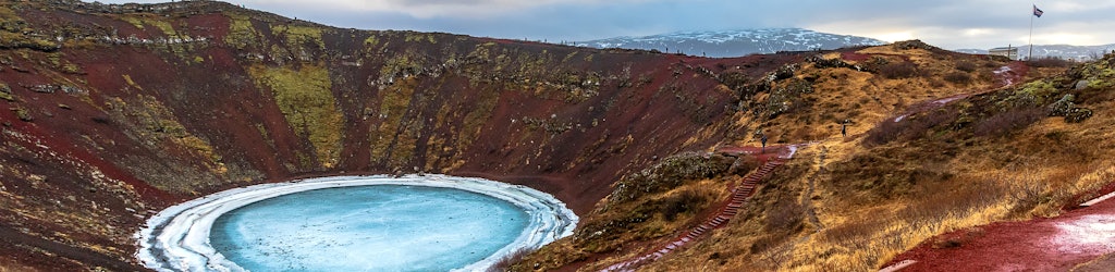 Visite o Círculo Dourado e a Lagoa Azul da Islândia em um dia com ingressos incluídos. Faça uma parada na espetacular Cratera Vulcânica de Kerid.