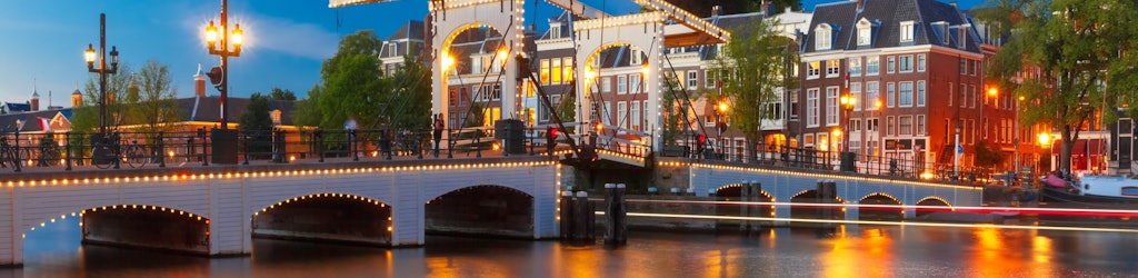 The white-washed bridge oozes charm, especially in the evenings when it’s lit up by over a thousand lightbulbs. The sparkling lights make this one of the most romantic views in the city – don’t be surprised to see someone down on one knee. Legend says that a kiss on the bridge will guarantee eternal love. Nearby, you can find the Amsterdam Opera, Carre Theatre, Hermitage Museum, and Royal Botanical Gardens.