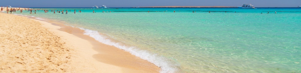 Setting sail from the resort of Hurghada, you’ll wonder how only an hour by boat has brought you to the Caribbean. With soft sand and a dazzling turquoise sea, the eco-resort of Mahmya really does have that desert island vibe. With plenty of loungers, parasols and a beachfront restaurant, you can stretch out and relax for the day.
